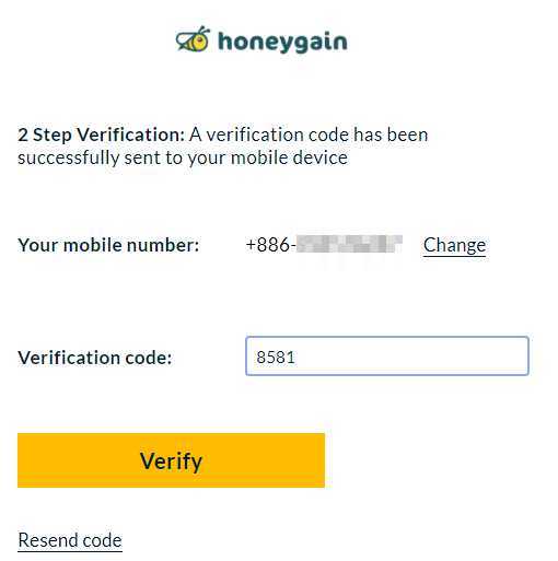 填入我們在手機簡訊上,收到的確認碼後,再按下 Verify就完成了。