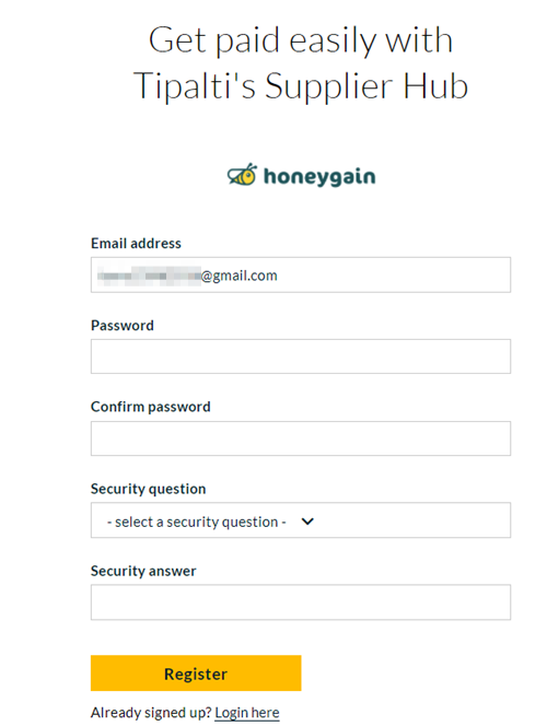 把相關的資料給填一填,這裡的帳號我們可以隨便註冊一個我們習慣用的,不用跟 honeygain的註冊的帳號是同一個也沒有關係。然後按下 Register。