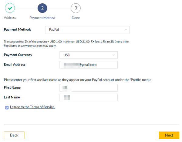 這裡就填入我們最常用的 paypal的信箱就可以了。接下我們再按下 Next。